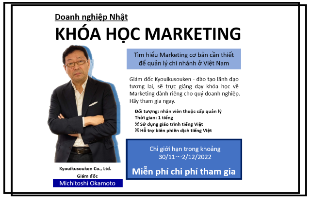 Trong khoảng thời gian 30/11 ~ 2/12/2022 Kyouikusouken sẽ viếng thăm Tp. HCM, Việt Nam. Nhân đây, chúng tôi sẽ tổ chức đào tạo miễn phí cho nhân viên Việt đang làm việc tại doanh nghiệp Nhật.